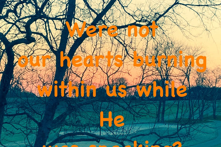 Then their eyes were opened and they recognized Him; and He vanished from their sight. They said to one another, “Were not our hearts burning within us while He was speaking to us on the road, while He was explaining the Scriptures to us?” Luke 24:31-32